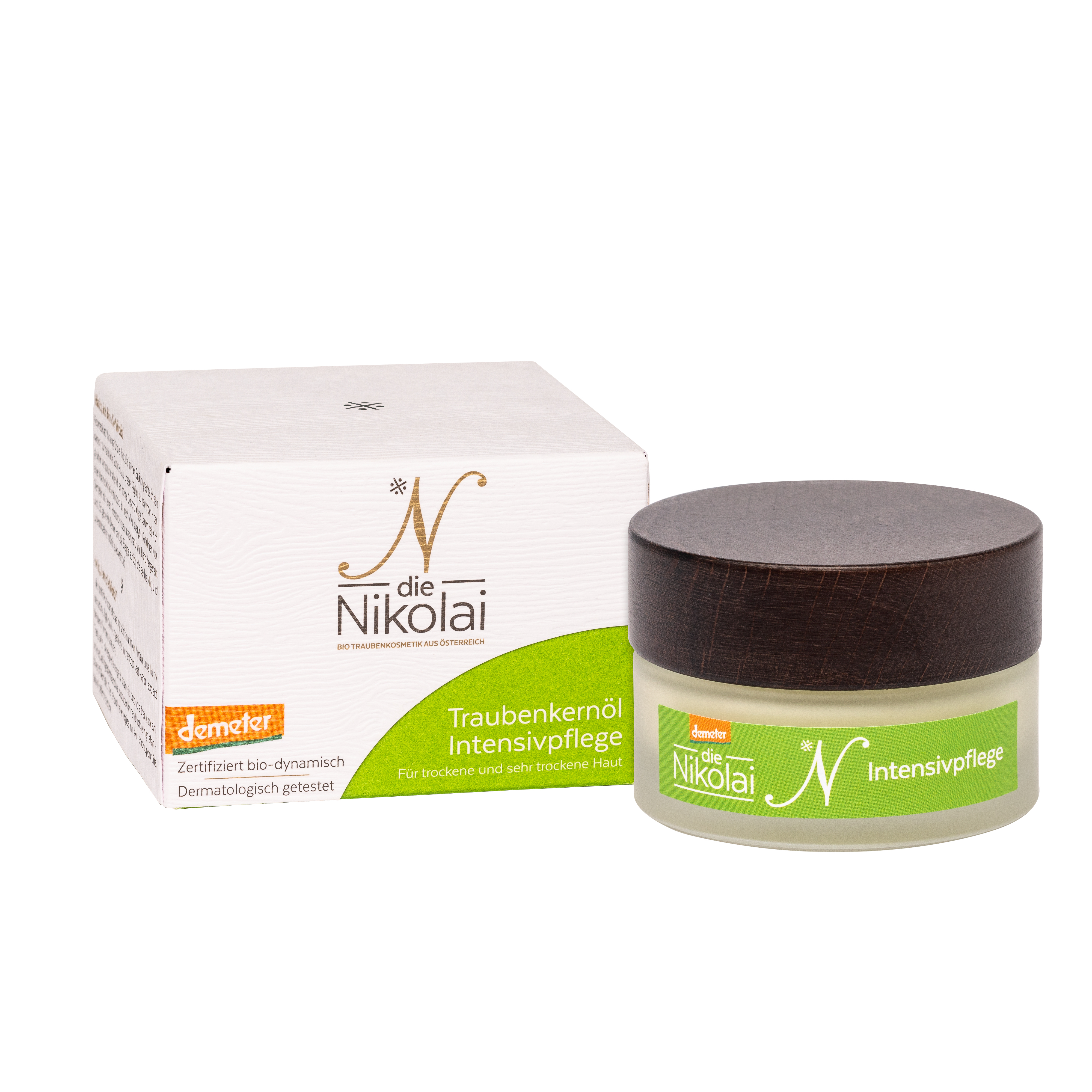 dieNikolai ist der jüngste Spross von Österreichs ältestem Weingut, dem Nikolaihof Wachau. Für die 100% biologische Traubenkosmetik werden die Rohstoffe aus den eigenen Weingärten verarbeitet. Alle Pflegen sind palmölfrei, mineralölfrei und verzichten vollkommen auf künstliche Konservierungsstoffe. Dadurch sind die inhaltsstofflisten kurz und die Produkte besonders verträglich. Verpackt in recyclebarem Glas und CO2-neutralen Kartons, für einen kleinstmöglichen Fußabdruck.