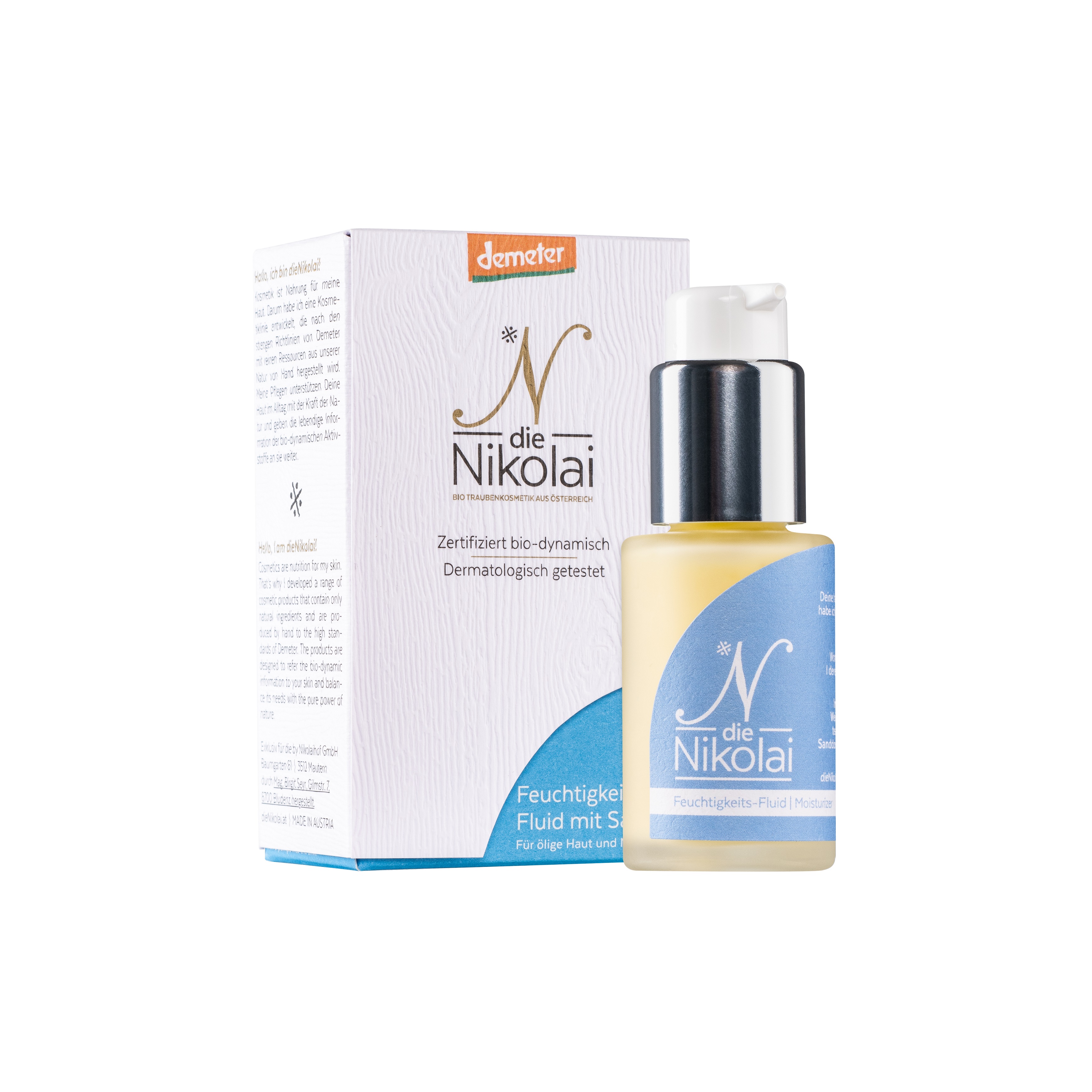 dieNikolai ist der jüngste Spross von Österreichs ältestem Weingut, dem Nikolaihof Wachau. Für die 100% biologische Traubenkosmetik werden die Rohstoffe aus den eigenen Weingärten verarbeitet. Alle Pflegen sind palmölfrei, mineralölfrei und verzichten vollkommen auf künstliche Konservierungsstoffe. Dadurch sind die inhaltsstofflisten kurz und die Produkte besonders verträglich. Verpackt in recyclebarem Glas und CO2-neutralen Kartons, für einen kleinstmöglichen Fußabdruck.
