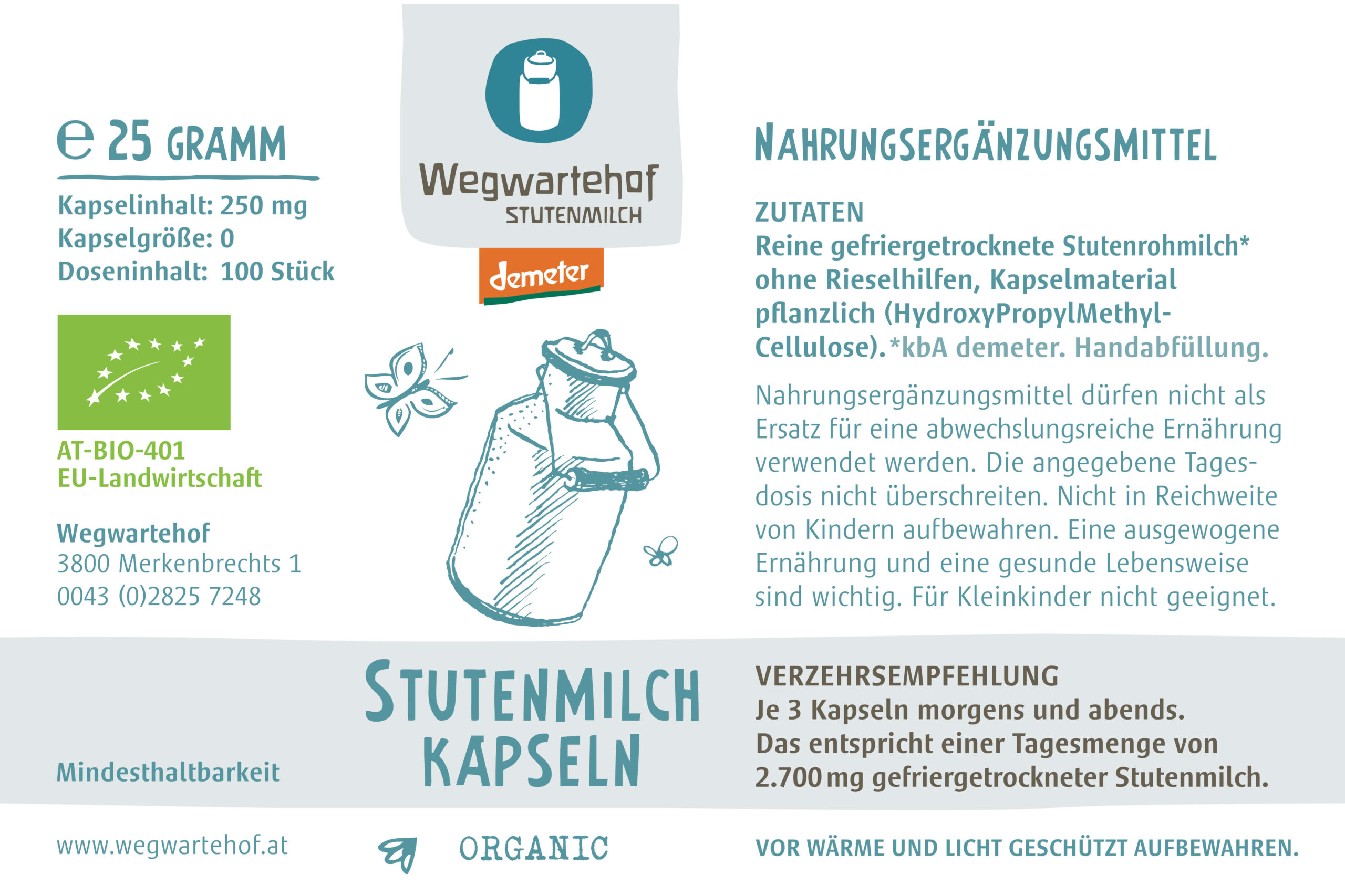 Reine gefriergetrocknete Stutenmilch in Demeter-Qualität,Hydroxypropylmethylcellulose (Kapselhülle)