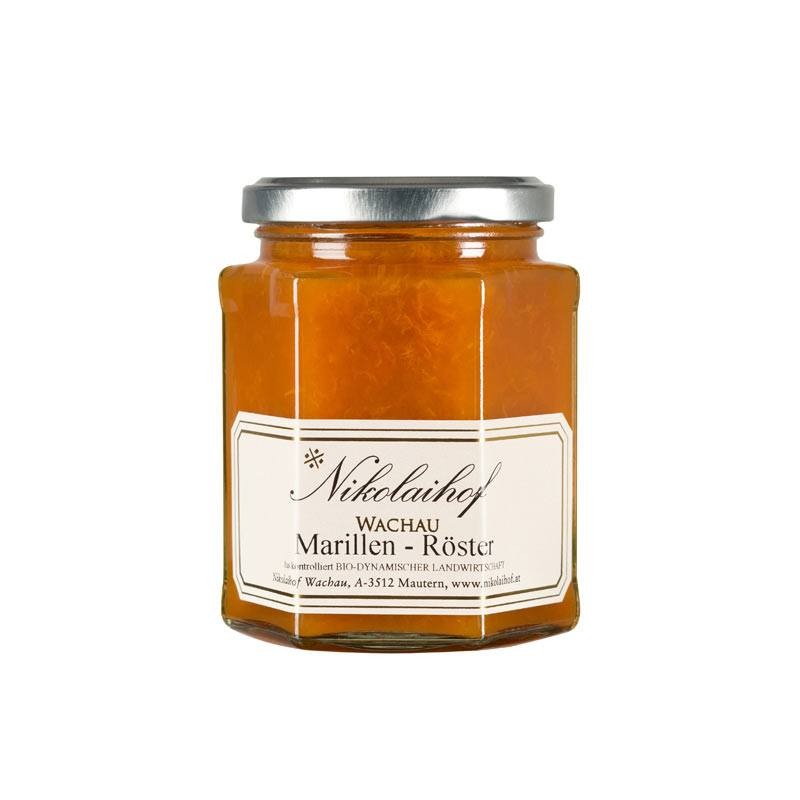 von Torten, Kuchen, Palatschinken, als Grundlage für"marillige" Soßen und Cremes. Nikolaihof Marillenröster als Dessert mit Schlagobers, als Beilage zu