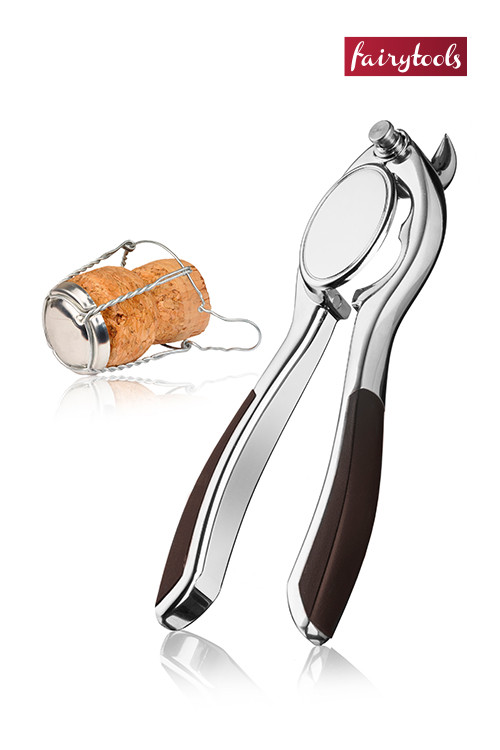 Die Champagnerflaschenzange von Vacu Vin nimmt den nervenaufreibenden Moment eine Champagnerflasche zu öffnen, vorweg. Sein cleveres Design entfernt Folie, den Metallring und den Korken in einer einfachen Bewegung.