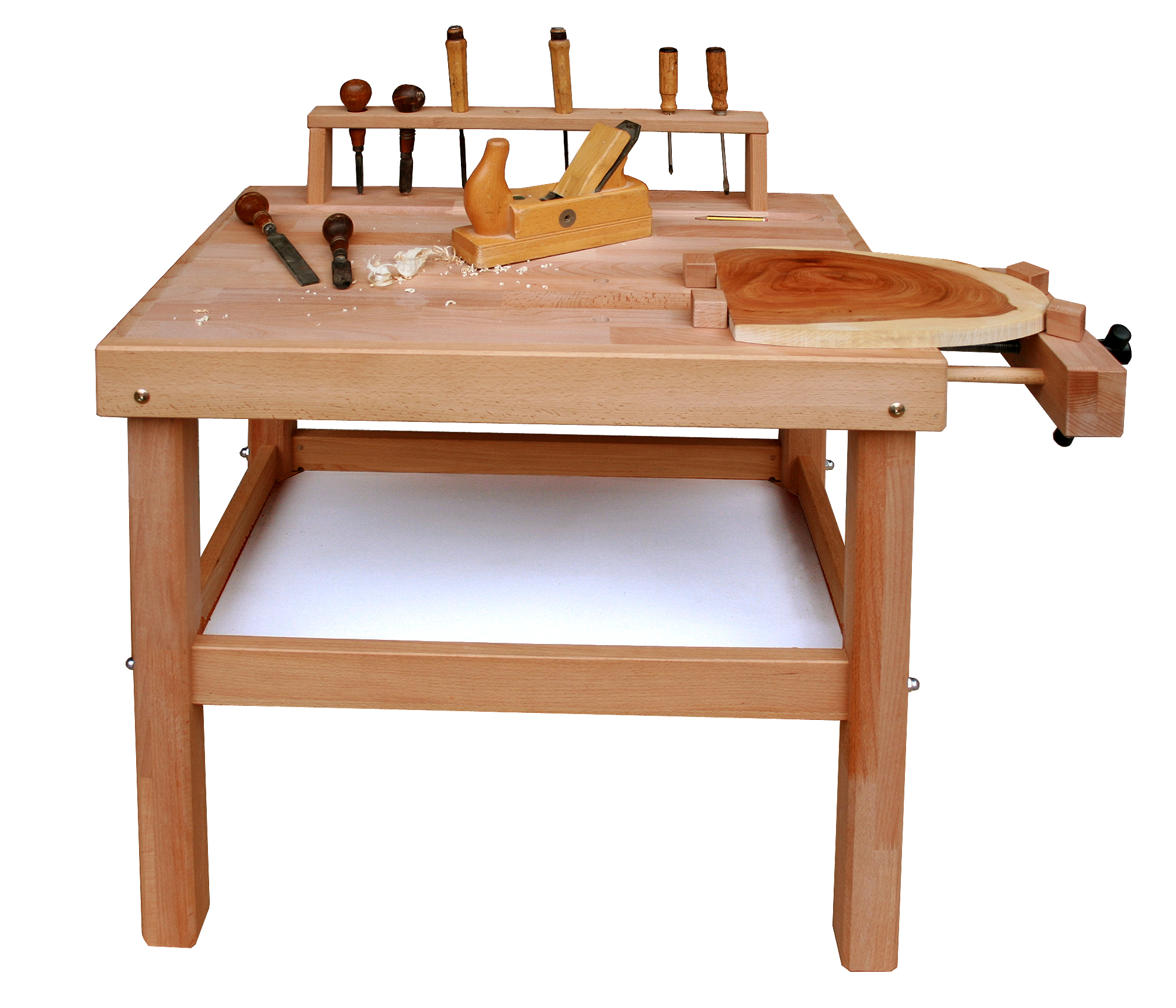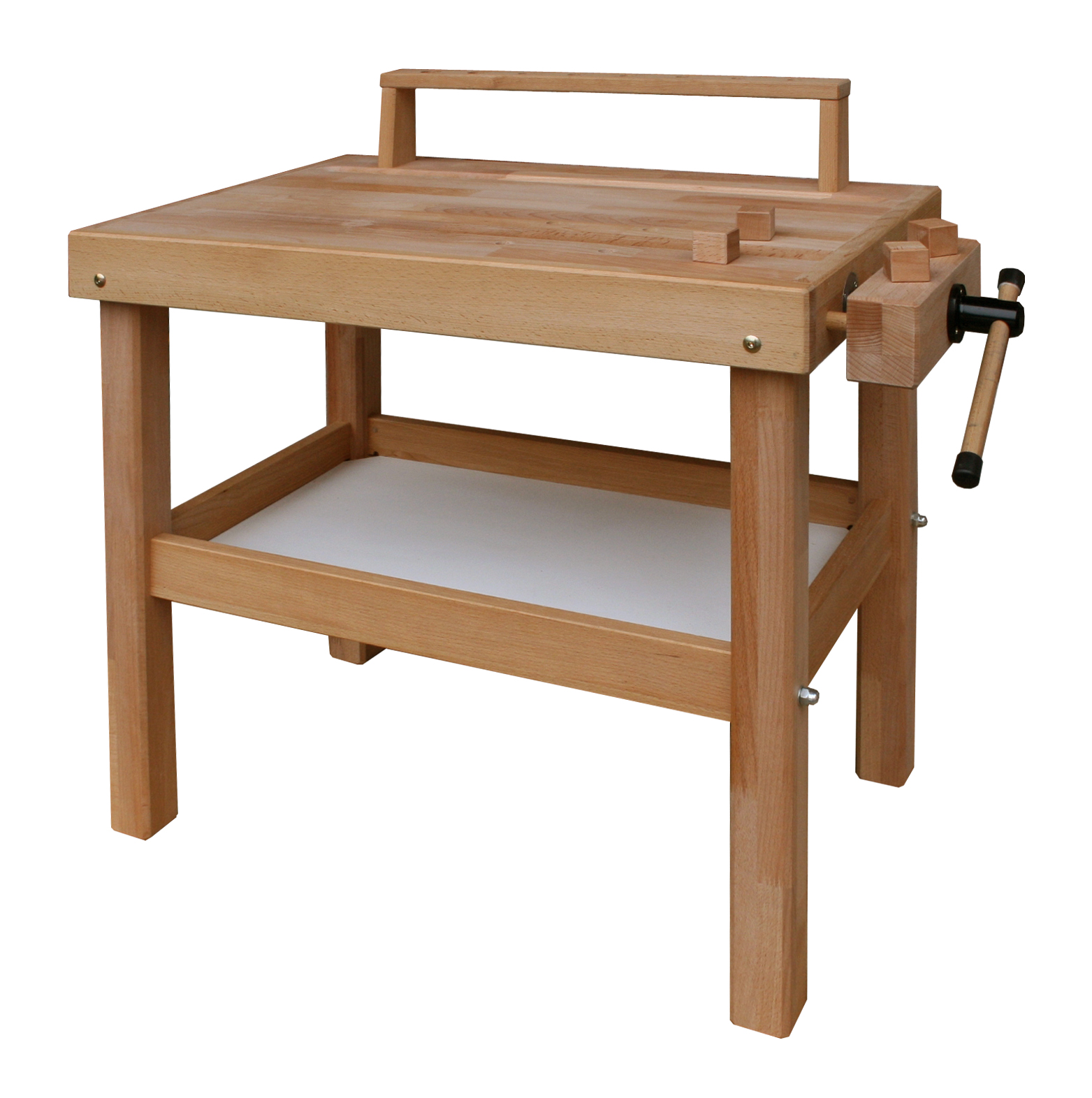 Unter der Arbeitsplatte befindet sich eine geräumige Ablage. Die Arbeitshöhe von 65 cm kann durch einfaches aufschrauben von Klötzen in 5 cm Abständen erhöht werden.