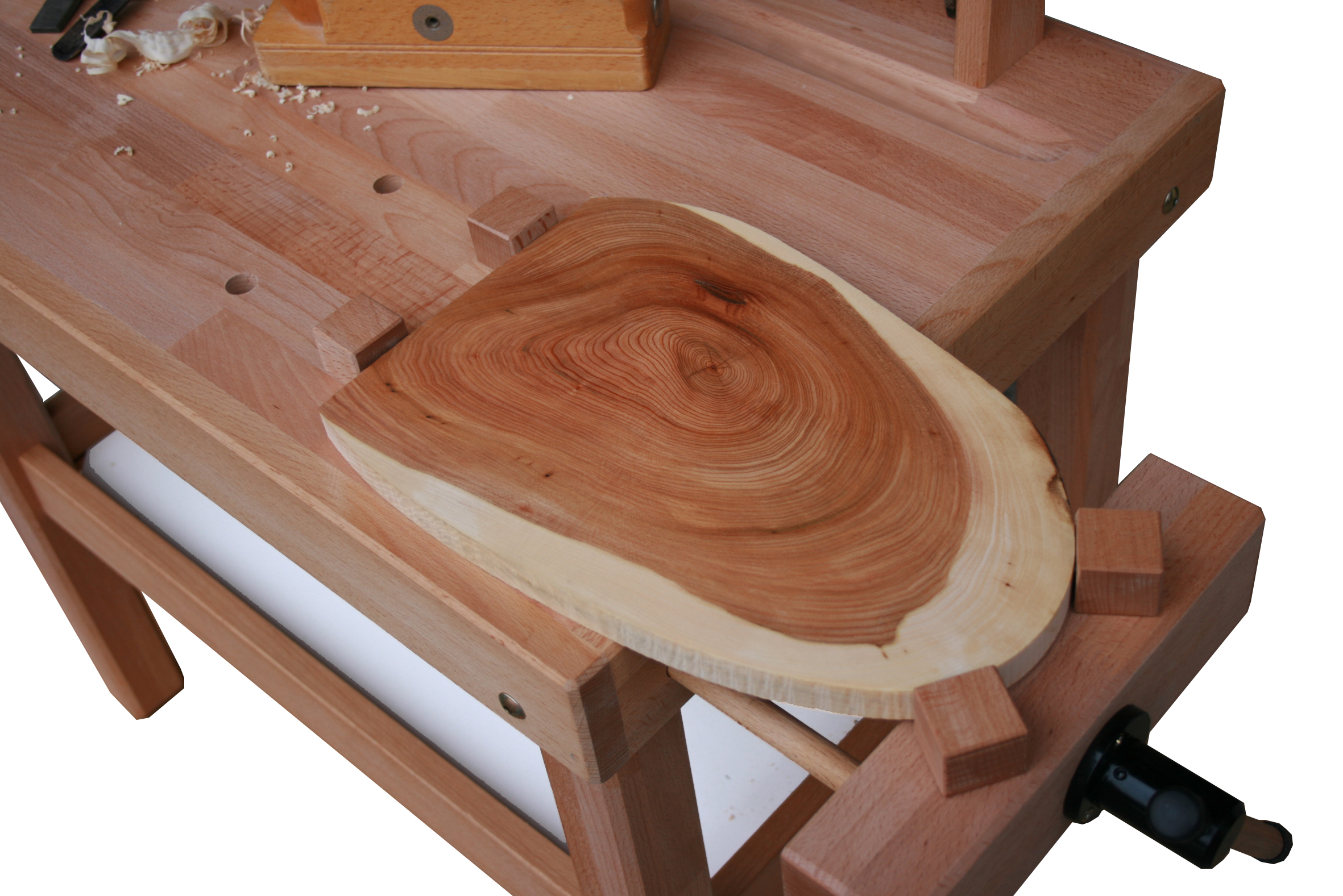 Durch die doppelreihige Anordnung der 4 Bankhaken, können auch runde Gegenstände eingespannt werden.